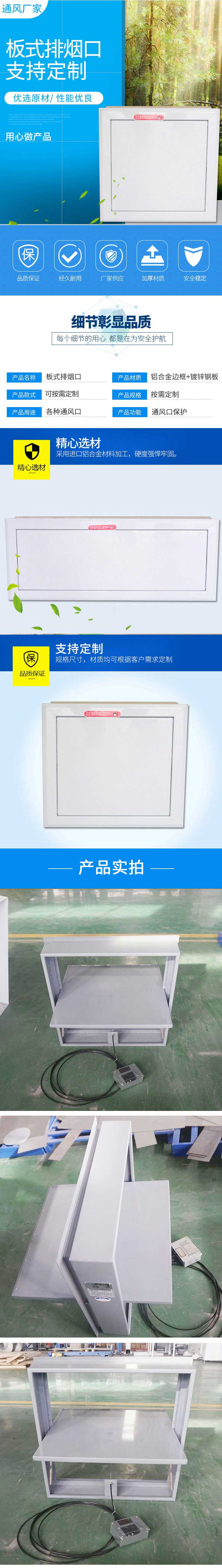 板式排煙口,安裝在走道或防煙前室,無窗房間的排煙系統的排煙口處,可以吊裝在天花板上或安裝在側墻。