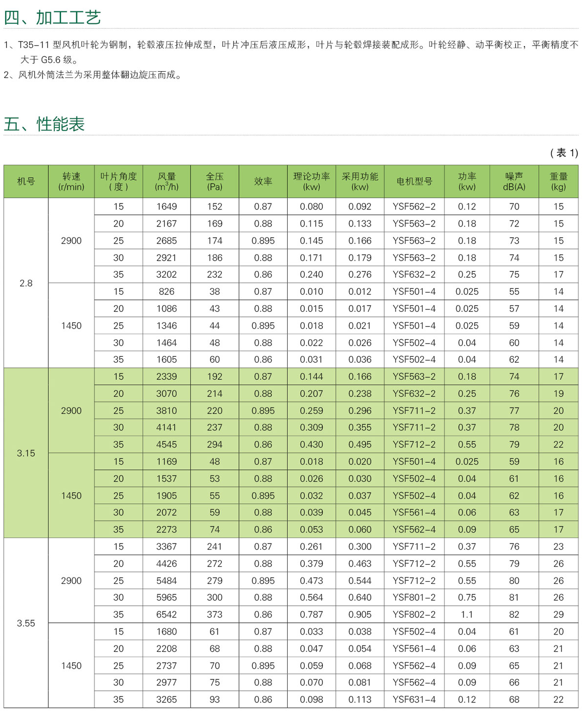T35-11系列軸流風(fēng)機(jī)是在T30-11的基礎(chǔ)上改進(jìn)設(shè)計(jì)的新型風(fēng)機(jī),主要優(yōu)點(diǎn)是結(jié)構(gòu)更合理,性能有了較大提高。