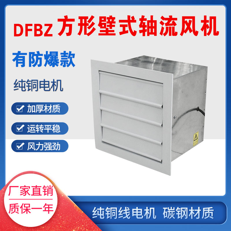 方形軸流風機簡稱DFBZ系列風機,它是采用低噪聲風機專用電機直聯(lián)傳動;整機制成方形,外形美觀,墻體預留方孔安裝方便; 出風口裝有自垂百葉, 以防止室外雨水和自然風向室內倒灌。