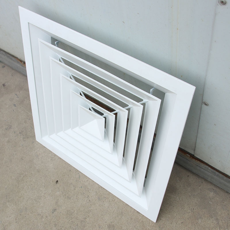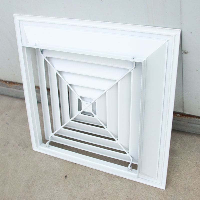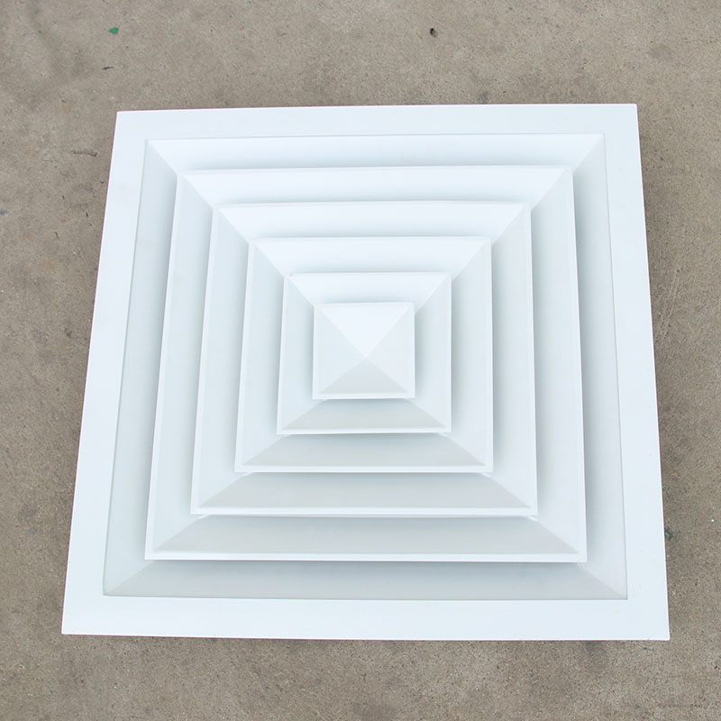 方形散流器(鋁合金散流器)優點及適用范圍:氣流屬貼附(平送)型,適用于播音室、醫院、劇場、教室、音樂廳、圖書館、游藝廳、劇場休息廳、一般辦公室、商店、旅館及體育館等。