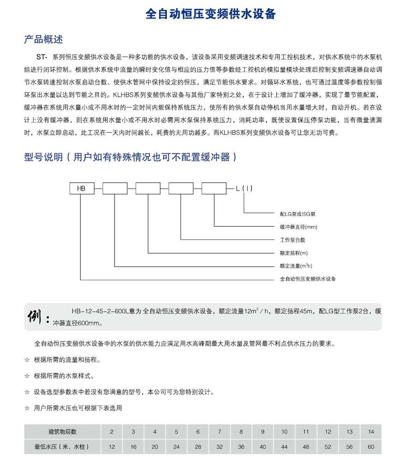 恒壓變頻供水設備是一種多功能的供水設備,該設備采用變頻調速技術和專用工控機技術對供水系統中的水泵機組進行閉環控制。根據供水系統中流量的瞬時變化值與相應的壓力值等參數,經工控機的模擬量橫塊處理后,控制變頻調速器自動調節水泵轉速,控制水泵啟動臺數、使供水管網中保持設定的恒壓滿足節能供水要求。