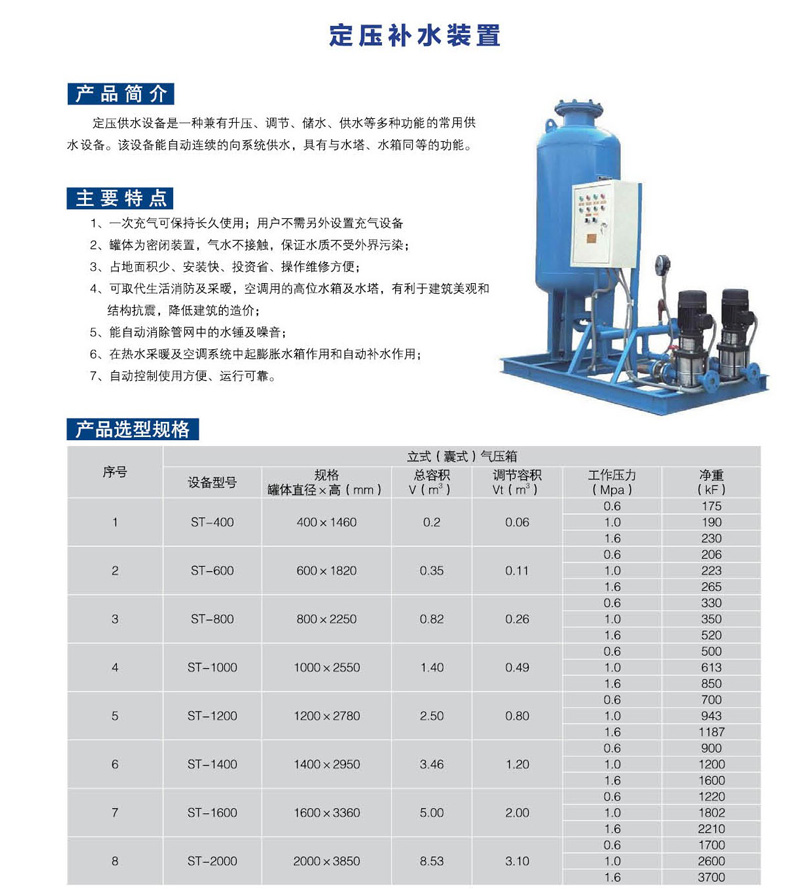 定壓供水設備是一種兼有升壓、調節、儲水、供水等多種功能的常用供水設備,該設備能自動連續的向系統供水,具有與水塔、水箱同等的功能。
