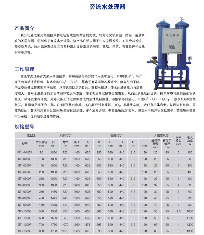 旁流水處理器是用高頻技術(shù)和電場能效應(yīng)相結(jié)合的方式,主要針對電化學(xué)腐蝕、結(jié)垢、菌藻繁殖的不同問題。該產(chǎn)品廣泛應(yīng)用于中央空調(diào)系統(tǒng)、工業(yè)冷卻系統(tǒng)熱交換系統(tǒng)、熱水鍋爐系統(tǒng)及其它各種用水設(shè)備系統(tǒng)的防垢、除垢、殺菌、滅藻處理并去除水中懸浮物。